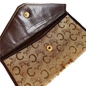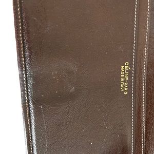 Pre-Owned Celine Wallet. Authentic. Outside is poor condition and interior is almost like new. Chocolate brown leather. 5 pockets. Exterior has damage to canvas. The outside clasp is kind of loose. Snap works. Please see all pictures for description