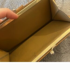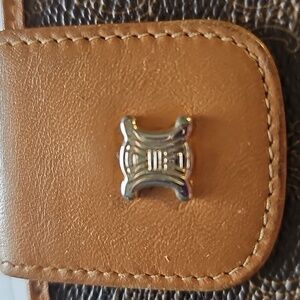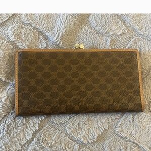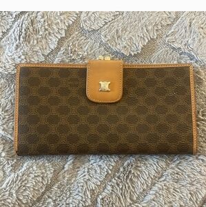 Stylish brown and tan Celine wallet featuring a gold accent and kisslock. Perfect for everyday use.