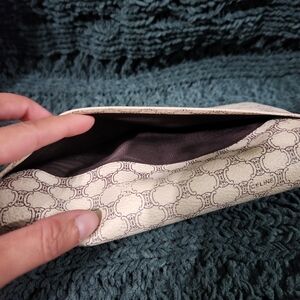 Elevate your style with the Celine white kisslock wallet. This elegant accessory features a classic design perfect for any occasion. Due to age, wallet does have flaws as pictured