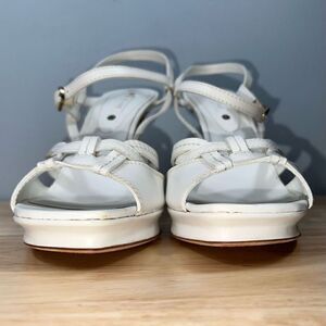 Celine, White Stiletto High Heeled Strappy Sandal Pumps Ankle Buckle Women’s 9.5