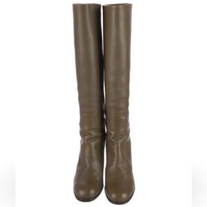 Celine | Women's Green Leather Pull On Riding Boots | Size: 37.5