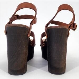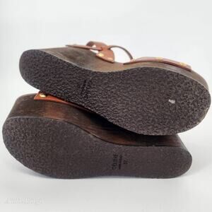 Celine Wooden Platform Wedge Sandals Tan Leather Gold Studs 37 (US 7)