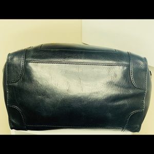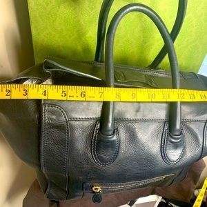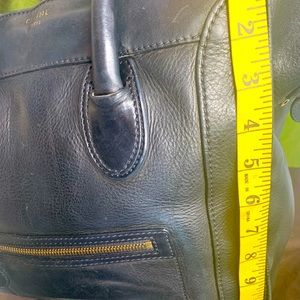 Celine Black CalfSkin lambskin lining gold metal hardware hand carry zipped bag without legs on the bottom this is considered as the small size pre-loved condition with normal wear visible with a few scratches with signs of wear at the bottom of the straps that’s attached to the bag but overall good condition corners has wear no tears or damage in good condition does not include dust bag or box red insert not included picture purposes only retail $3100 Final Sale All shipped items are recorded
