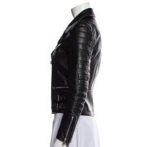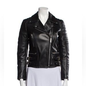 Celine black leather jacket size IT 40 mint condition. Selling. Excuse I never really got to wear it much because it runs a bit small and I’m a bit too big at the bust for it.