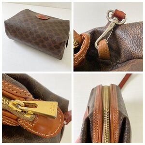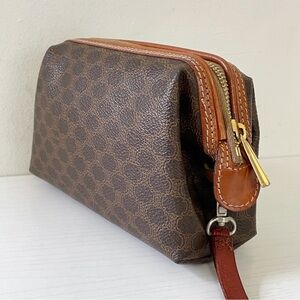 Celine brown macadam canvas and leather vintage framed wristlet pouch