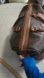 preloved condition. rubbing on edges (see pics). 17"l x 9"h x 9"w. very clean interior. zippered pouch attached inside. price reflects condition. gold tone hardware