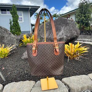 Celine macadam Tote Bag Brown PVC Leather Shoulder Bag Purse
