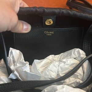 Celine small cabas bag. Beautiful black leather with Celine logo on the front. Can be worn handheld, clutch or crossbody. Gently worn. But no signs of wear. Bought from a Celine boutique 3 years ago. Comes with dustbag.