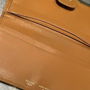 I have used this Celine wallet since it was gifted to me. It is the perfect daily wallet. Thin but functional. Some of the edges are worn ever so slightly but it is not stretched, no stains or rips and the snap and coin purse work perfectly.