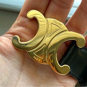 Celine Medium Triomphe Belt in Taurillon Leather black and gold