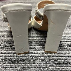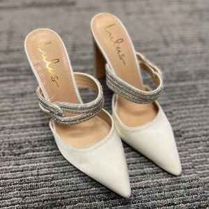 Slip into the Lulus Celines White Satin Rhinestone Pointed-Toe Mule Pumps and leave everyone speechless as you strut by! Sleek satin shapes this chic slide-on pumps that have a pointed-toe upper, curved collar, and a dazzling rhinestone-embellished vamp strap with a knot-inspired detail. A sultry blade heel completes the look!