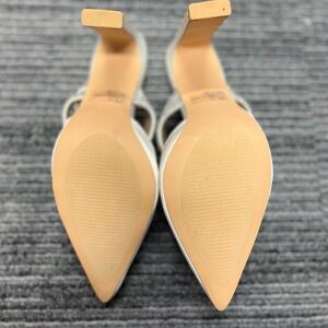 Celines White Satin Rhinestone Pointed-Toe Mule Pumps