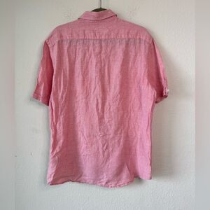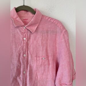 Celio 100% Linen Short Sleeve Button-Up Shirt Pink Micro Check Sz L Preppy Beach