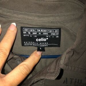 EUC No flaws Celio long sleeve collared Shirt Army green color 21” Pit to Pit 29” long