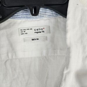 Celio Men's Regular Fit 100% Linen White Short Sleeved button-down Shirt Size 18