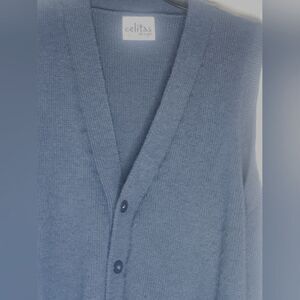 Celitas Design M Pockets Pretty Spruce Blue Alpaca Wool Men Cardigan Vest PERU