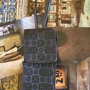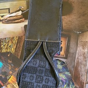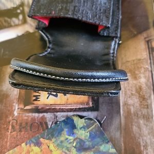 Black cell phone holder. Ideal for flip phone or small items such as cards, cigarettes, keys or lipstick. Pre-owned and in good condition. View pics please.