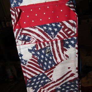Color is "Red, White, Blue Flag" print with red and gold lining.