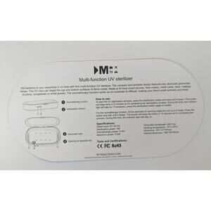 UV sterilizer box. UV lights to sterilize personal items. 2 UVC light sources. 2 duration settings. Only operates while cover is shut.