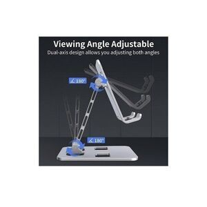 - Cell Phone/Tablet Desktop Adjustable Stand Color Silver Size Adjustable, Foldable, 180 Degree Rotating
