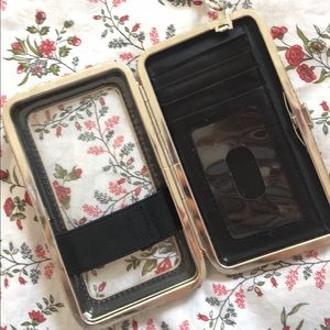 Awesome for a night out!! metallic gold iPhone four and five s and wallet wristlet case