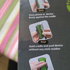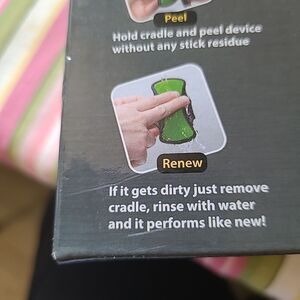 Pre-owned in new unused condition. The box is factory sealed and is distributed by Aldi's.For use with cell phone or GPS. press phone or device firmly against the cradle. Hold cradle and peel device without any stick residue. If it gets dirty, just remove cradle,rinse with water and it performs like new. Has a 360 degree pivioting mount