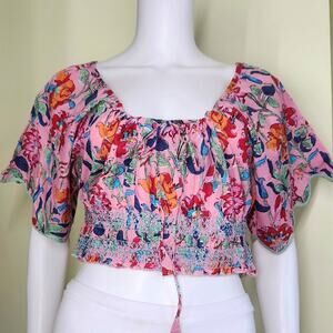 Cella & Flo 2Pc Set Floral Smocked Cropped Top Wide Leg Pants Size S/M Boho Luxe