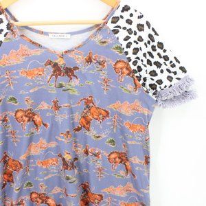 Cellabie Blouse Western Shirt Womens Rodeo Horse Bronco Cowgirl Fringe Size M