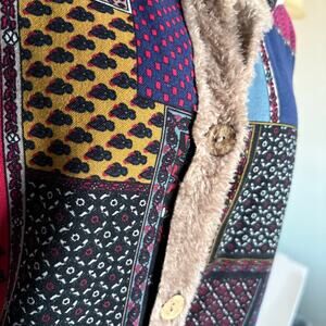 Cellabie Patchwork Coat 2XL Boho Fleece Phoebe Buffay Style Cottagecore Y2K