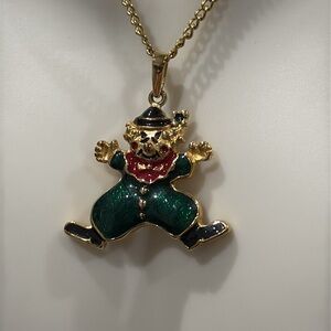 Cellini Gold Clown Necklace. Great vintage conditioner condition. No flaws. Please refer to photos for exact size, details, and condition. Comes in Cellini Leather Pouch.