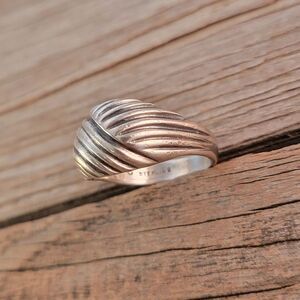 Cellini vintage sterling silver domed woven look contemporary ring with antiquing.