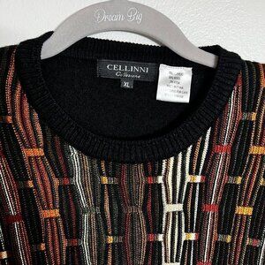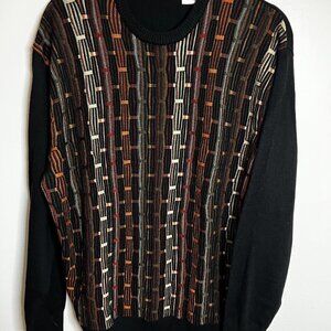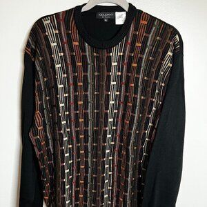 Cellinni Ribbed 3D Knit Cosby Sweater Men's XL Browns Orange VTG 90s