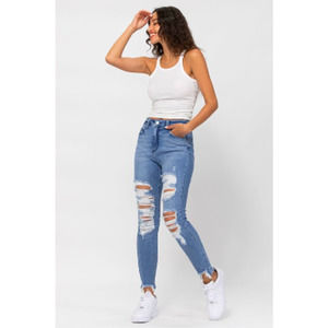 Mom jeans can be fun and sexy. Pair these high waisted sexy back distressed jeans with some heels for a night out on the town. Additionally equipped with five pockets, belt loops and a zip fly closure.