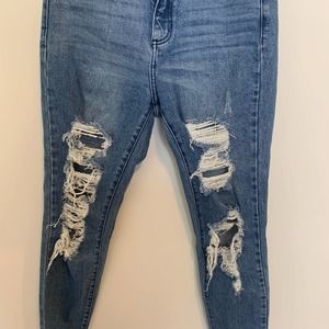 Cello Distressed Skinny Jeans Size 3/26 Blue Zip Button Closure Casual Cotton