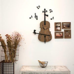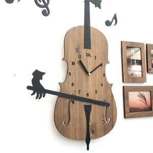 Invisible Cellist Playing the Cello - Handcrafted Non Ticking Silent Wall Clock Music Decor