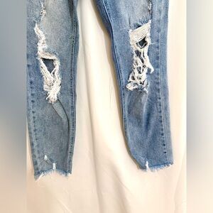 Cello High Rise Straight Leg Destroyed Ankle Length Jeans With Distressed Hem Size 3