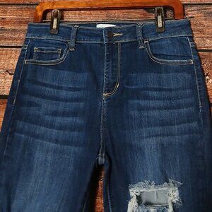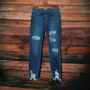 Cello Jeans Size 11 Ankle Crop High Rise Distressed Raw Hem Blue Denim Stretch