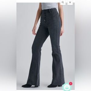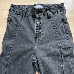 Cello Juniors Sz 3 Black Button Front High Waist Jeans Flare Rough Edge Bottoms