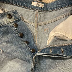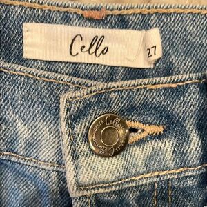 Stylish light blue denim jeans by Cello. Features classic button closure.