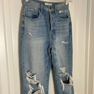 Longline distressed jeans in a relaxed fit in the rigid fabric along with the light wash