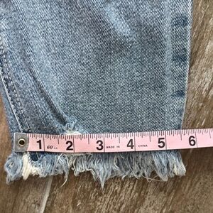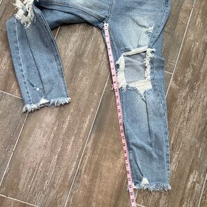 Stylish medium blue jeans with ripped details. High rise fit. Ideal for casual wear.