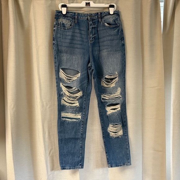 Cello Ripped Blue Straight Leg High Rise Jeans