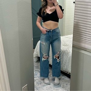 Ripped jeans: very good conditions no additional tearing in the fabric, model is 5’ 10”, and true to size