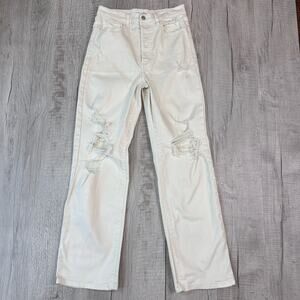 Women's Wide Leg High Rise Jeans by Cello, US Size 9, White in color, Distressed, Stretchy, Zip & 2 Button Closure, Belt loops, Side & back pockets, Regular Fit, Denim, Ankle length, Casual, travel, work, Comfortable.
