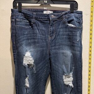 Trendy distressed design. Relaxed boyfriend fit. Perfect for casual outings.