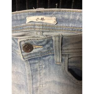 Cello Women’s Distressed Jeans Size 9/29 Button Fly Stretch Blue Denim 27.5”