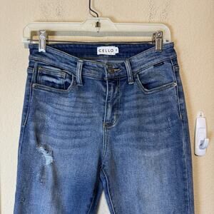 Cello Womens Jeans Size 9 Skinny Distressed Raw Hem Medium Wash Denim crop ankle