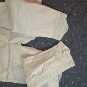 Elevate your wardrobe with Cello's white distressed jeggings. Stylish and versatile for any outfit. size 3 new