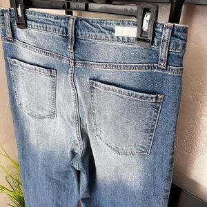 Rolled bottoms, zip up fly, 5 pocket, belt loops.