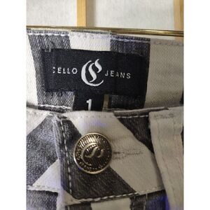 Skinny jeans from Cello. Juniors size 1. Raw hem. Style BK-10524-BLK. 78% cotton, 20% polyester, 2% spandex. Machine washable. Made in China. Excellent condition. Nonsmoking home.